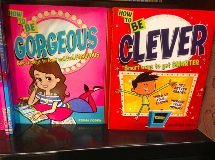 I think it’s fair to say that this photo speaks for itself. The way these books are placed next to one another is strategic in pointing out the flawed perceptions we have toward genders and their respective values. Children are sponges. They are developing and taking in the whole world before them.