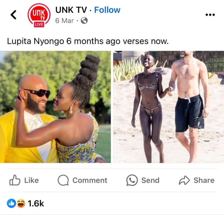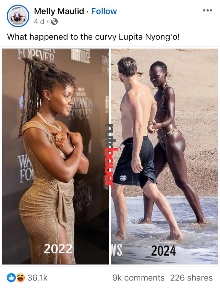 The photos were spread on Kenyan social media pages like wildfire, however the comments were less than desireable. Lupita who was wearing a swimsuit, was quickly called out for being too thin. Thin specifically because she's dating a white man, there were over 36 thousand emojis on one post, mostly laughing at the caption.