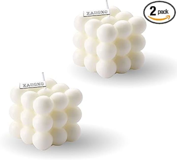 The captivating bubble design of these white cube soy wax candles sets them apart, creating unique and simple spaces in your living room, kitchen, dining room, or bathroom. The addition of these bubble candles is what your home has been missing, adding a touch of elegance and style to your interior decor.