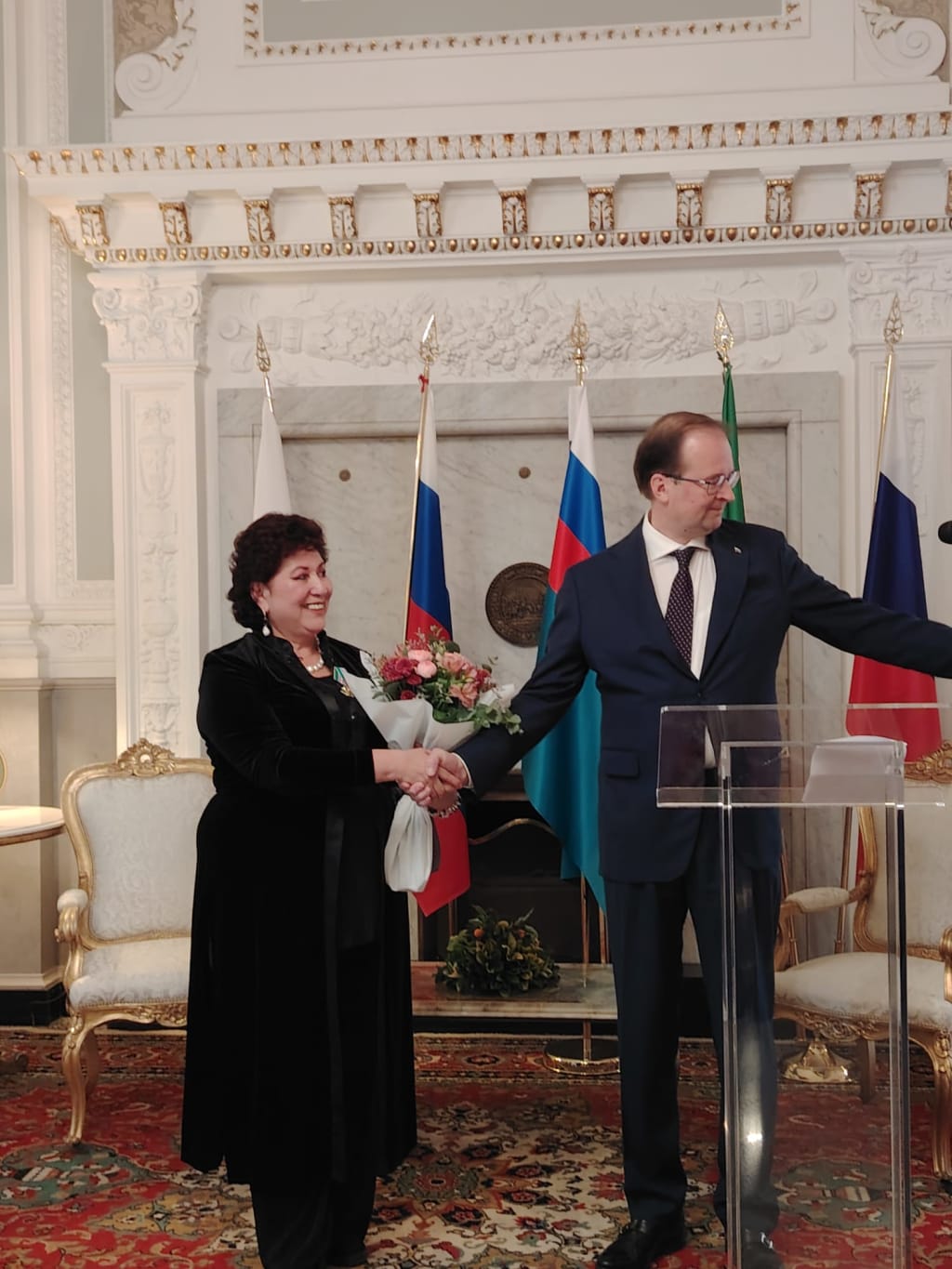 On December 12, 2024, at the distinguished venue of the Embassy of the Russian Federation in Italy, located in Via Gaeta, Rome, a special reception took place to honor the conclusion of the diplomatic mission of H.E. Sonia Brito Sandoval, Ambassador of the Plurinational State of Bolivia to the Italian Republic.