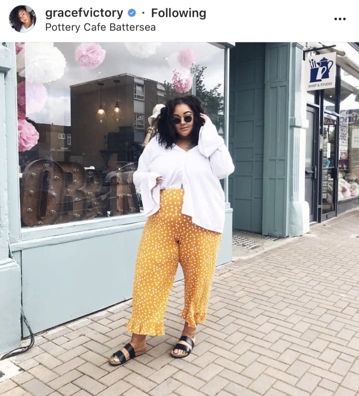Grace is a bright, bubbly, self-care loving blogger. Travel to her page, healgrowglow, dedicated to sharing and healing trauma, and you will see just how open and raw Grace’s presence is. Grace lets her followers into her life through her feed and her blog, discussing style (yes, she links her outfits), travel, and beautifully unique bath recipes and more. Grace is a relentless body positive advocate breaking barriers by flouncing around carelessly in bathing suits, partnering with Nike Women, and posting delicate photos of her back rolls. On her blog she writes about everything from her favorite looks, eating disorders, to what being black means to her, her life as a freelancer, updates on her partnership with Nike, and her relationship with exercise. She's also a published author! Check Grace out for some wholesome fat content.