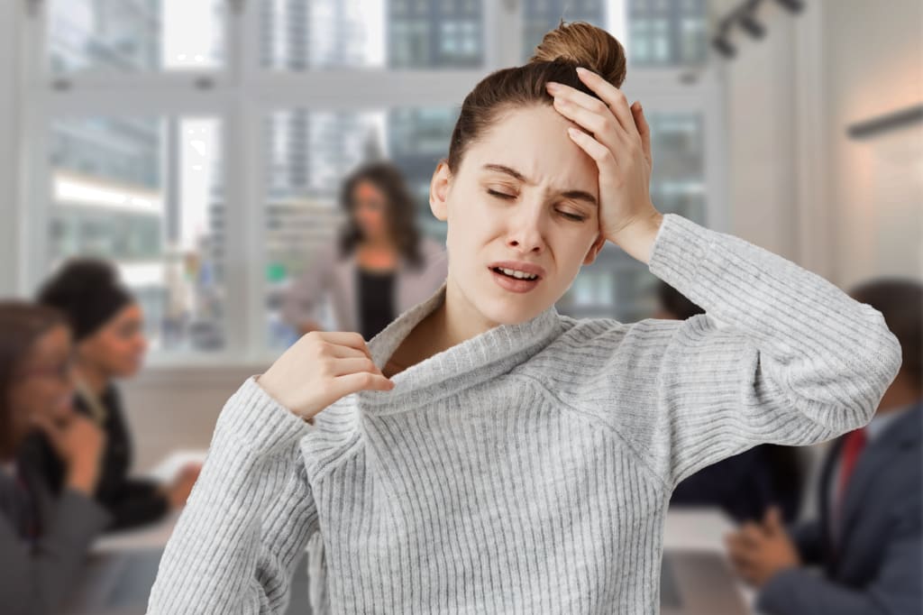 The more upset you get about having that hot flash now, in front of your co-workers, or your accountant, the worse the symptoms become, until you might even feel nauseous, fearing you might vomit on someone's shoes.