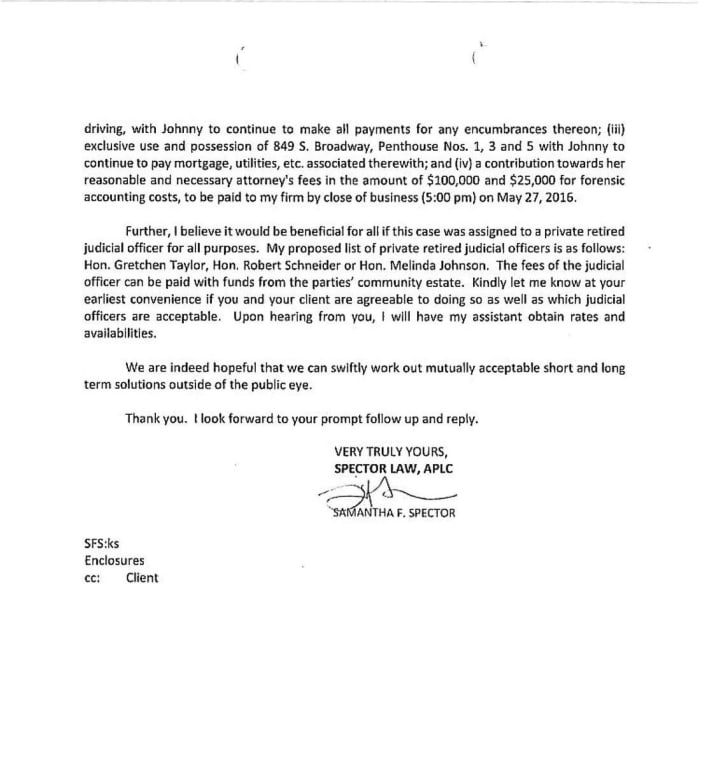 The reality is Johnny Depp had always denied abusing her and wasn’t willing to pay her a dime for those allegations. In fact, before Amber ever went public with her claims, she sent a letter asking for money and materials or else she would sell her story, and seeing as she did go public, Depp obviously didn’t give into her demands. SEE EXTORTION LETTER BELOW: