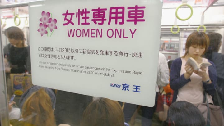 During my time living in Tokyo and Kyoto, Japan I’ve had on occasion to use the women only cars on trains, only a few times; usually when I or my wife felt threatened by drunk men at weird hours, or when the crush of people was such that groping was sure to happen. That being said I’ve found that many people are interested in the experience so I’ll share a bit about it. It should be noted that my experiences are for the local trains, and that I haven’t taken a women’s only car cross country in Japan, however the differences according to friends are very minimal.