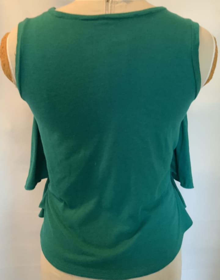 My client found a blouse that was her all time favorite because the ruffles in front covered any mis-shapen image of her bosom. However the vendor who designed this top no longer carried the product. She possessed only two of these tops that were worn and tattered. After numerous washings they became stretched and loose. Herein lies the problem, the blouse fell open as she leaned forward. She had lost her confidence as a woman when constantly worried about her physical appearance underneath her tops. She asked for a way to build a bra or camisole to attach to a newly designed top. I thought of building the cami directly to the top with the ability to insert the prosthetic. Rather than hassling with layering a blouse over the problematic bras I decided to design an all in one concept. Of course in order to do this I needed my favorite Fiskar Scissors! Lol none of my work is possible without those Orange Fiskar Scissors.