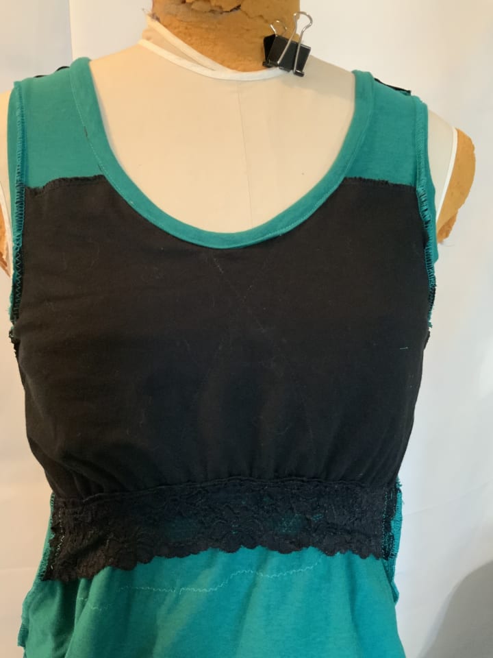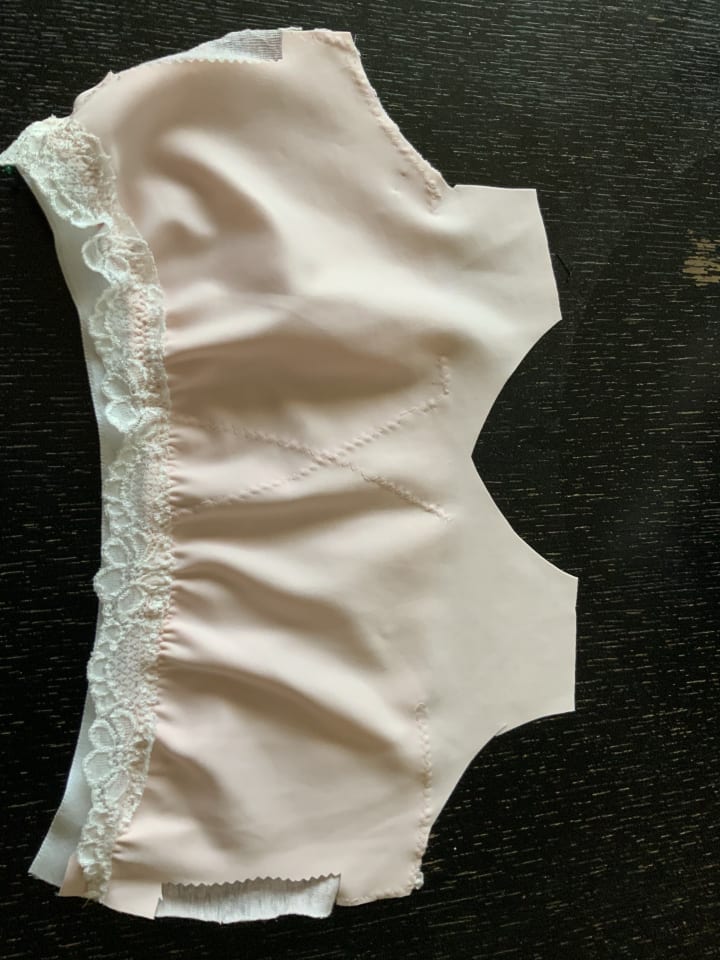 I designed the all in one concept. I was careful to use 100% cotton for the lining that was in direct contact with the skin. Then I used the stretch bra fabric to house the prosthetic. My Fiskar pinking sheers help to finish off the insert pocket. This is a simple concept that can be added to any ready to wear garment. Attaching directly to the neck line with the side seams incorporated and sewn into side seams. My client can now wear her clothes with confidence. She is comfortable and continues to fight her battle with breast cancer. In conclusion every aparel designer cannot accomplish said services without a pair of Fiskar Scissors! Lol