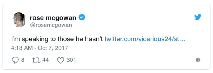 Charmed actress Rose McGowan, herself a victim of Weinstein's, has called on ladies of Hollywood to speak out and to be brave. Though she indicated later that she was not speaking to his victims, fans haven't taken it that way as many have called out the actress for calling out women who may not be ready to share their own stories.