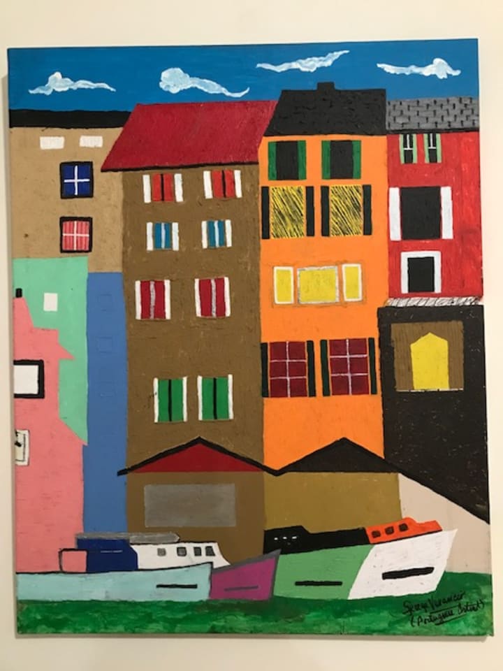 The artist is George Verancio. "Portuguese Artist," he's signed under his name in parentheses. I picked it up for $50, which may sound expensive, but it’s a very large original painting. In my opinion, it’s lovely. I adore the colors.
