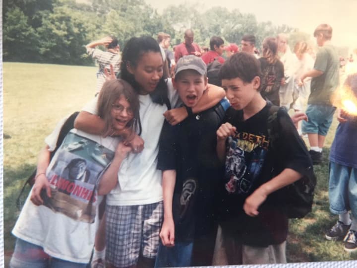I’m the one rocking the Lemonheads t-shirt and the hair with no discernable part. Something tells me that if my school had required my punk ass to have attained a required average in deportment, order, and neatness—especially considering my love of raggedy old thrift store clothes—I’d still be there, never graduating to high school.