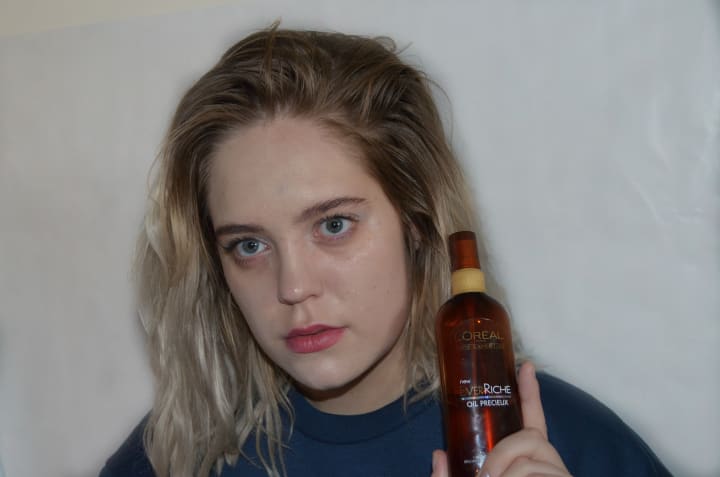 Next, spray all through the lengths and ends with a lightweight oil. I like the L’Oreal Ever Riche Oil Precieux, but anything light enough to be dispersed through a mist is fine for the job.