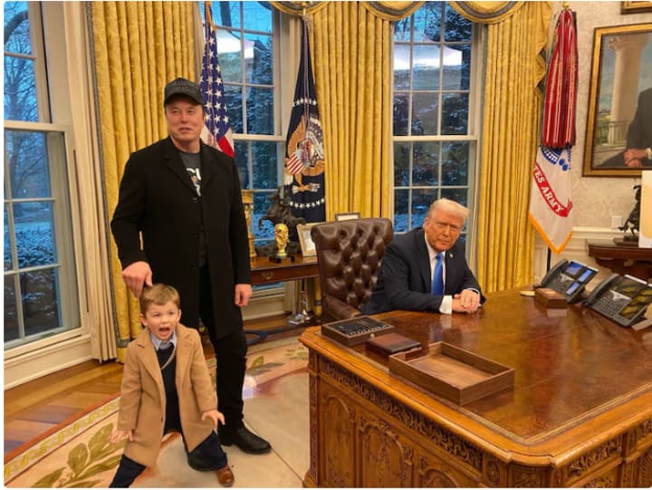 Musk responded to a post by venture capitalist Katherine Boyle, who posted a side-by-side image with the caption: "Normalise children being everywhere", alongside the photo of X in the Oval Office. Musk replied with a heart and smiley emoji.