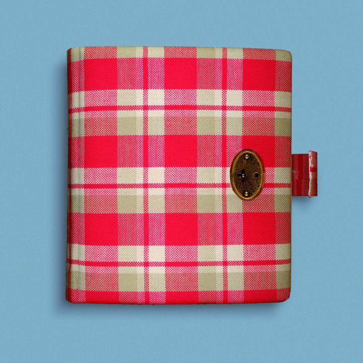 The diary was an autograph book which was bound with red-and-white checkered cloth, with a small lock on the front.