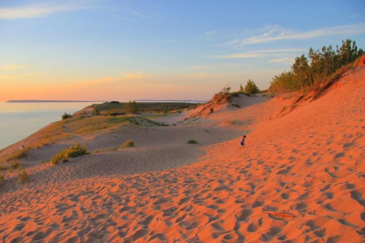 Located in Empire, Michigan, the Sleeping Bear Dunes encompasses about 35 miles of Lake Michigan's eastern coastline and one of the most beautiful places to visit in the US. Known to locals as "the dunes," the Sleeping Bear Dunes offer natural features such as forests, beaches and glaciers in the winter. Check out the hiking trails and take in the beautiful views through the Maple/Beech forest.