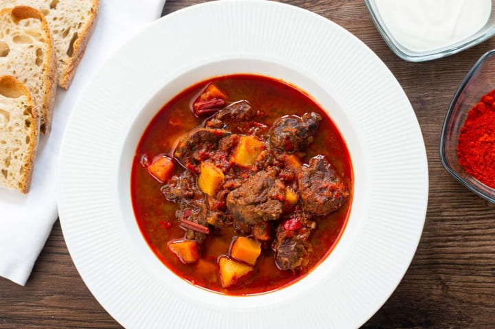 Goulash is a hearty and flavorful Hungarian stew that has become a staple dish in Central Europe. Made with tender chunks of beef, onions, paprika, and a variety of spices, goulash offers a warming and satisfying dining experience. This slow-cooked dish showcases the rich culinary heritage of Hungary and is often served with traditional sides like dumplings or bread.