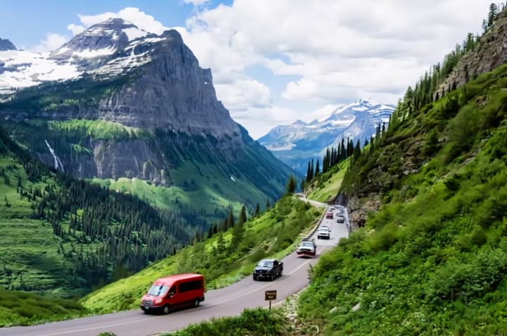 This is a 50 mile drive through the middle of Glacier National Park where one can see glaciers, waterfalls and wildlife including bighorn sheep and mountain goats.