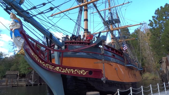 Columbia is a full-scale replica of Columbia Rediviva, which was the first American ship to circumnavigate the globe. This ship, however, makes its home in Rivers of America in Disneyland.