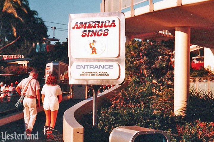 America Sings is an attraction that features a host of animatronic animals (like those found in It's a Small World) that sing songs from various periods in American history. The attraction has since closed.