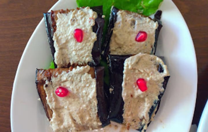 - Eggplant Walnut Rolls (a cold appetizer and vegetarian)