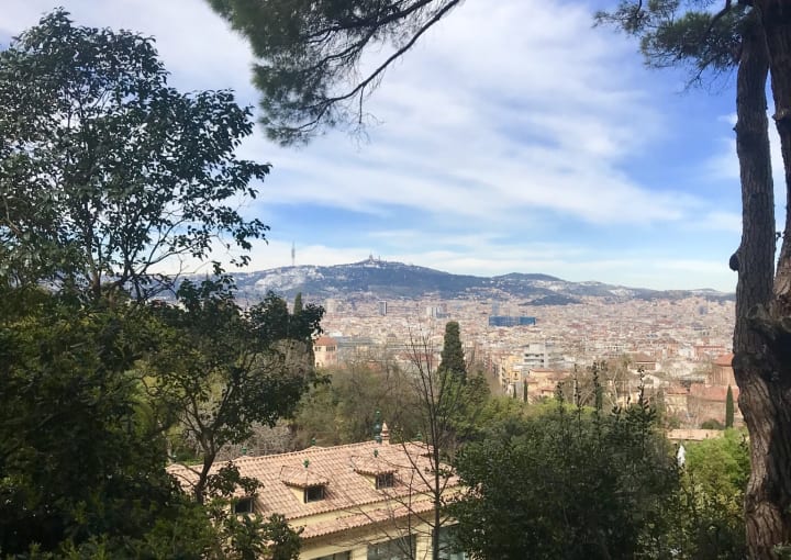I hiked through miles of vibrant gardens in the Parc de Montjuïc area on my first day in Barcelona. The gardens are very well kept, allowing you to get lost in the acres of trees and flowers. While searching for more beautiful and serene sections of the park, I stumbled across one of the best views from the hills of Barcelona.