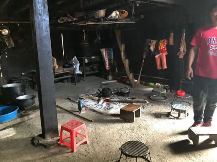 Cooking from the ground floor with firewood creates a lot of smoke. I saw laundry on top of the fire too.