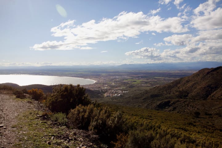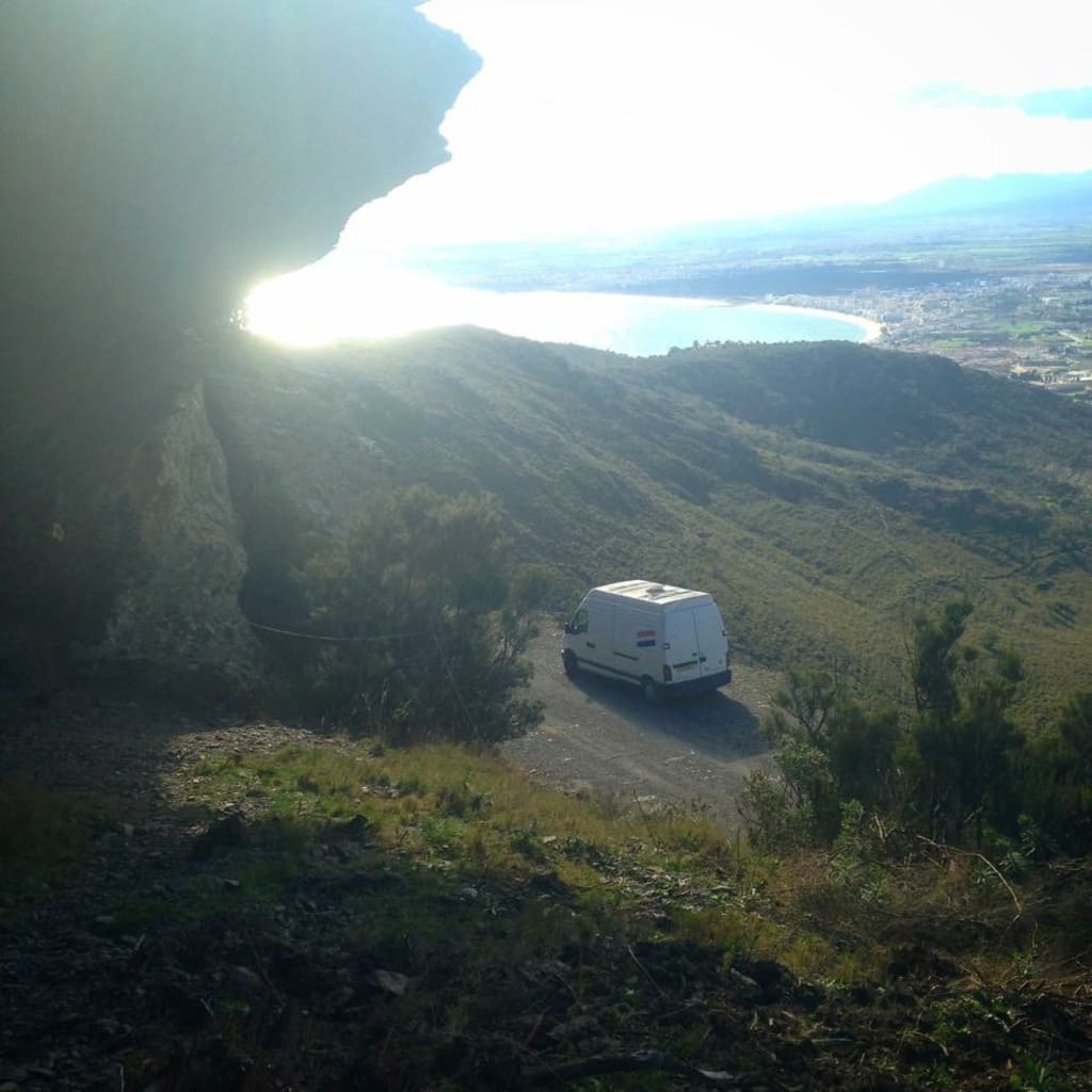 We weren't driving for long after when the road dropped away into a rough track. I. began to perk up. It felt like we were on an adventure again, as dust flew up behind us and the road rattled our bones. Our curiosity overpowered any doubt or fear and we drove on. The landscape started to morph into more dramatic shapes again. Caves began to appear in the sheer cliff faces, and the road grew narrower. As we turned the corner, the steep hills parted way and revealed a breathtaking view. Naturally we pulled up to take it in. The mountains surrounded a patchwork blanket of fields and villages, greeted on one side by the crystal clear Mediterranean Sea. A gentle breeze carried the salt air up to meet us as we stood on the green mountain, taking in the breathtaking scene. The lights in the small scattered villages started to twinkle as the light started to fade into dusk, revealing glimpses of the secrets within.