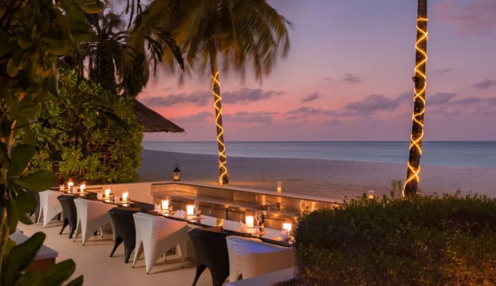 Atoll Market, the popular all-day dining restaurant, features live cooking and offers a new perspective on touring the culinary world, from breakfasts to creative evening cocktails. Guests can choose to dine indoors amid the interactive show kitchen and powder sand floor, or experience outdoor dining under swaying palm trees and a gentle breeze from this beachfront restaurant.