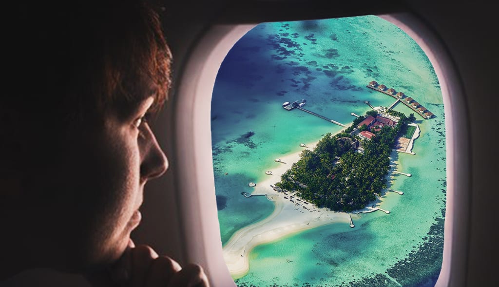 Happier than anyone else on board and confident to return soon to his paradise, David left all his worries, all his joyless days and his lack of laughter on the atoll in the endless vastness of the Indian Ocean, which became smaller and smaller behind the stern of our seaplane and finally disappeared.