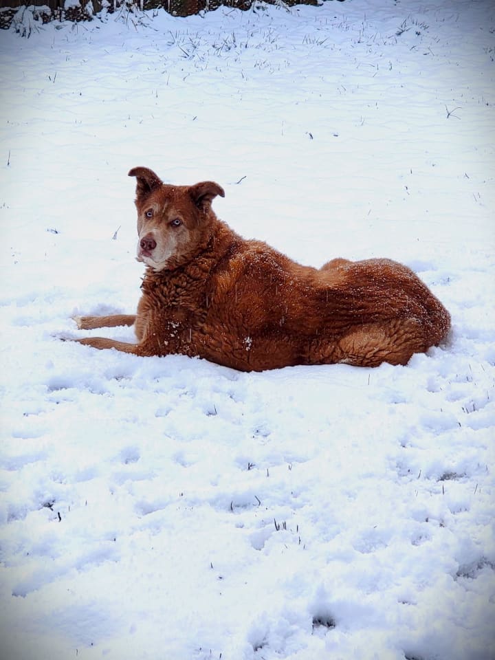 As I disintegrate on the loveseat, Atka with all of his 90 pounds and thick down coat climbs up and rests his entire body on top of me. The pressure of his weight reminds me I am alive. The smell of his oily winter coat engulfs me. He is trying to keep me warm, I realize. He is trying to save my life. Hours or lifetimes pass; time becomes as meaningless as warmth. A subtle shift in the light stirs my attention from under Atka’s belly. The sun is rising. I glance over at the thermometer. It reads - 18 degrees over the kitchen sink, and I am still alive.