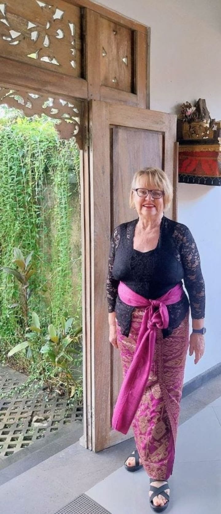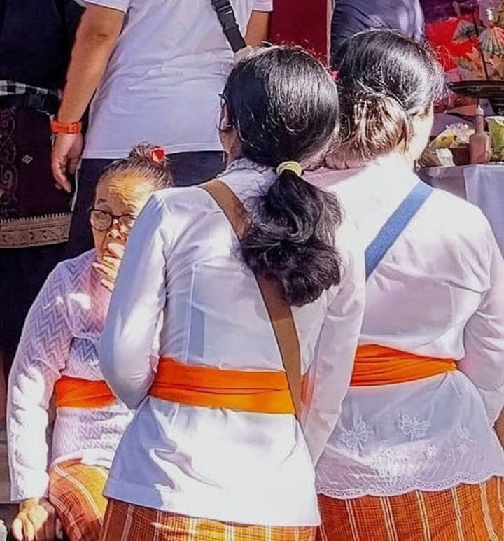 After inquiring of locals about the appropriate attire - on Bali, one doesn't throw on a black frock and call it day - I scurried around to numerous shops for an acceptable black kebaya (traditional lace blouse), sashes, skirt, and sarong.