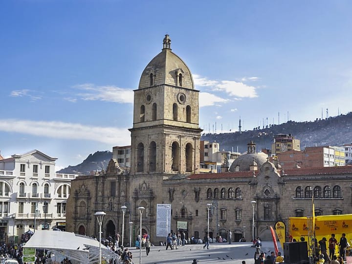 Plaza Murillo is home to the Government Palace, the House of Congress, the Ministry of Foreign Affairs, and the Municipal Government House. People enjoy relaxing in the plaza under shady trees.