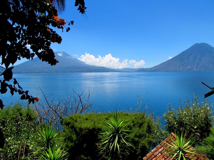 Lake Atitlan is a lovely lake that sits at 1,538 meters above sea level and is surrounded by hills and volcanoes. It was formed in a volcanic crater. Along its shore are quaint villages.