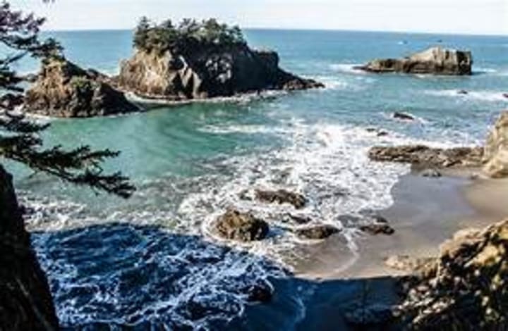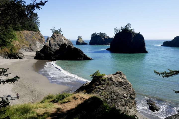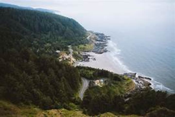 In the Siuslaw National Forest, enjoy Cape Perpetua, a dramatic spot along the Oregon coast. A rugged headland rises hundreds of feet over the Pacific. There are trails that lead hikers through dense forest with views of crashing waves.
