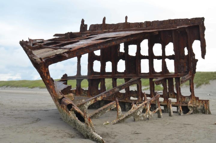 The Peter Iredale was a four-masted steel barque that ran ashore on October 25, 1906, on the Oregon coast while heading to the Columbia River.