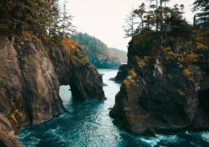 Start at the Cape Perpetua Visitor Center with a walk through coastal forest and rugged lava formations to Thor’s Well. This is a collapsed sea cave that fills and empties with the tide. It is fascinating to see the rocks capture the swirling action.