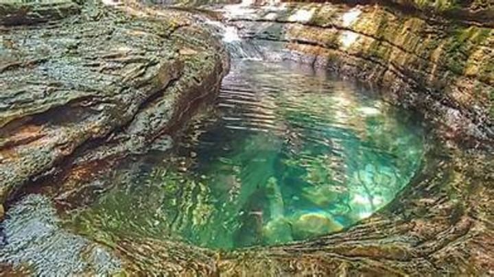 The Devil’s Bathtub Trail is located in Scott County. The trail is difficult because hikers have to scramble over boulders and walk through water. This is a naturally smooth swimming hole with a small waterfall.
