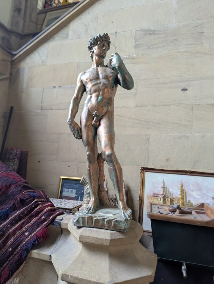 This gives you a few ideas of what the place is like, to there are many rooms and passages to explore with some amazing things hidden or not so hidden there like the replica statue of Michaelangelo's "David" in all it's glory which you can't miss because it is on the entrance staircase.