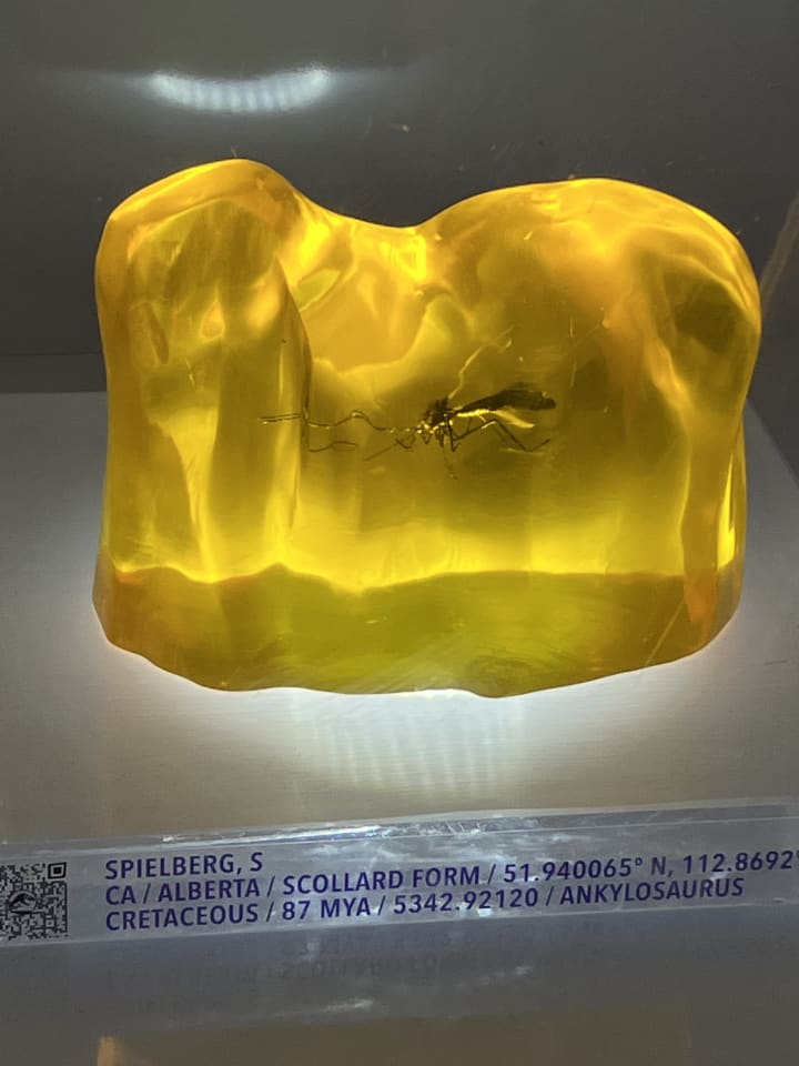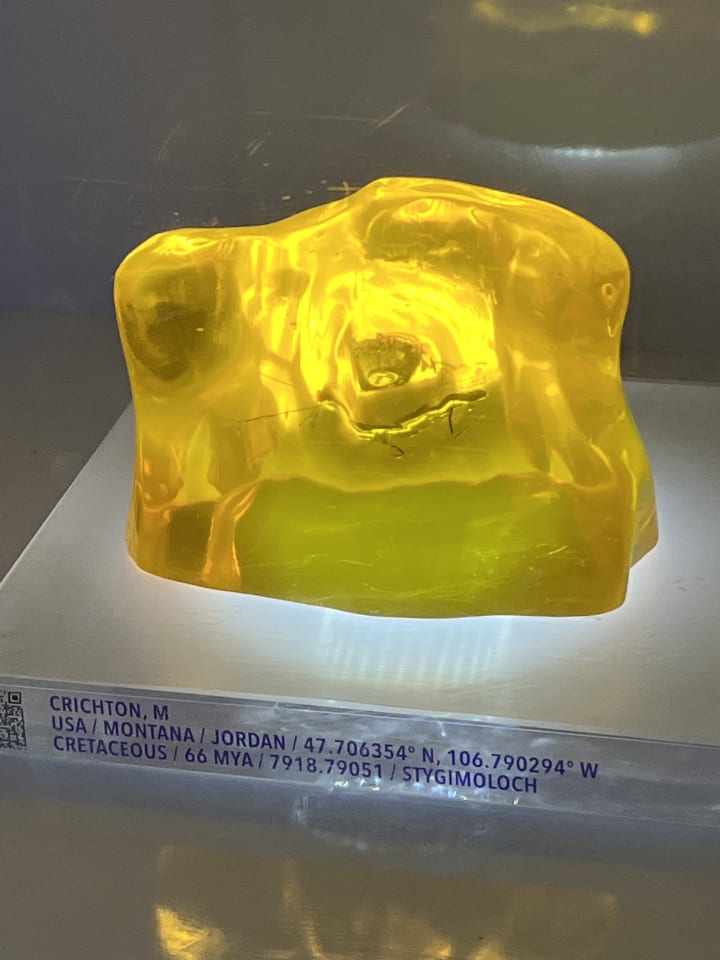 "I see some of you are very interested in our collection of insects in amber! Now, if you're fans of the original novels and movie franchise, there's actually a few easter eggs placed within the amber wall - a couple names you might recognize..."