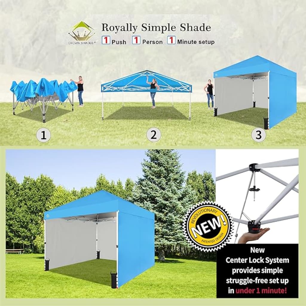 Introduction When it comes to outdoor events, having a reliable and sturdy shelter is crucial. The CROWN SHADES 10X10 Commercial Shade Tent with Center Lock offers an ideal solution for those looking to create a comfortable and protected environment for various occasions. Designed for durability and convenience, this shade tent stands out in the market due to its robust construction, ease of setup, and versatility. Constructed from high-quality materials, the CROWN SHADES 10X10 tent is built to withstand the rigors of outdoor use. Its frame is made from heavy-duty steel, ensuring stability even in windy conditions. The powder-coated finish not only adds an aesthetic appeal but also provides additional protection against rust and corrosion, extending the tent's lifespan. The blue fabric canopy is crafted from UV-resistant material, offering protection from harmful sun rays while also providing a vibrant touch to your outdoor setup.