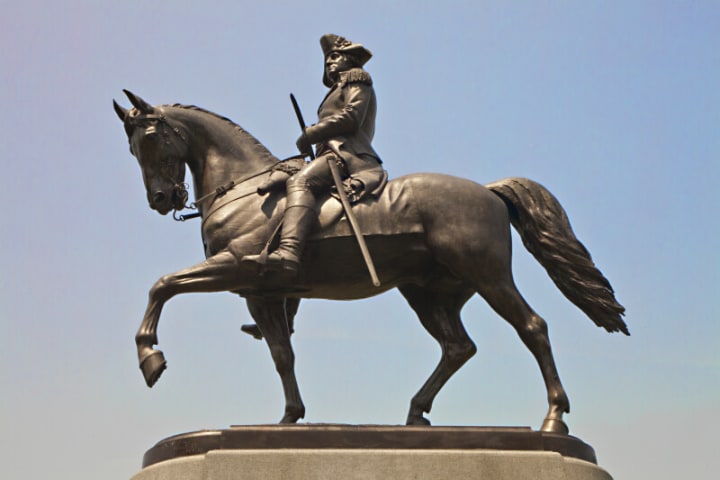 It has Victorian-style monuments and statues among them an equestrian statue of George Washington.