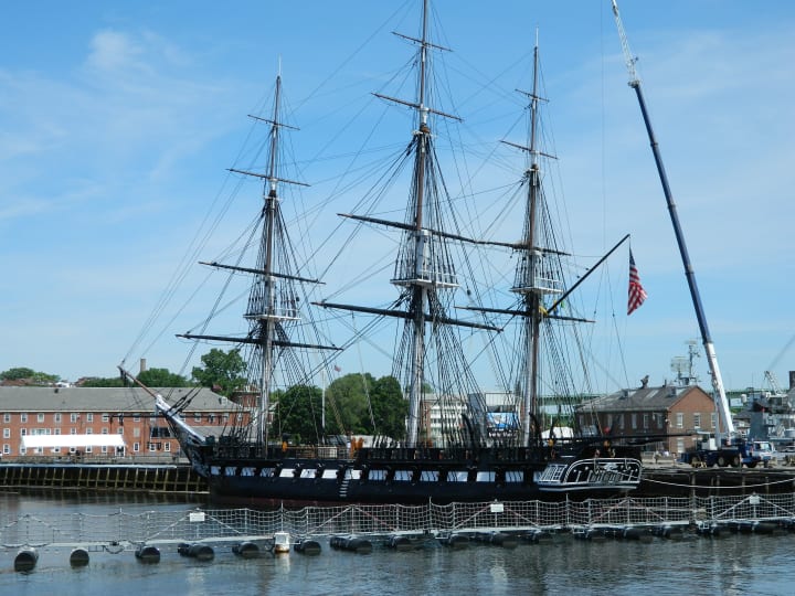 The trail ends across the bridge in Charlestown with the 54-gun frigate USS Constitution and the 220-foot Bunker Hill Monument.
