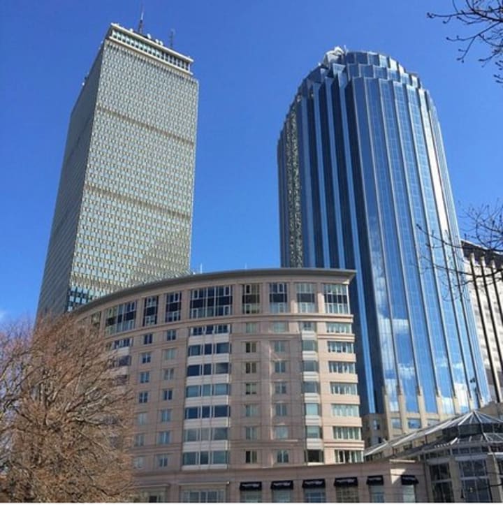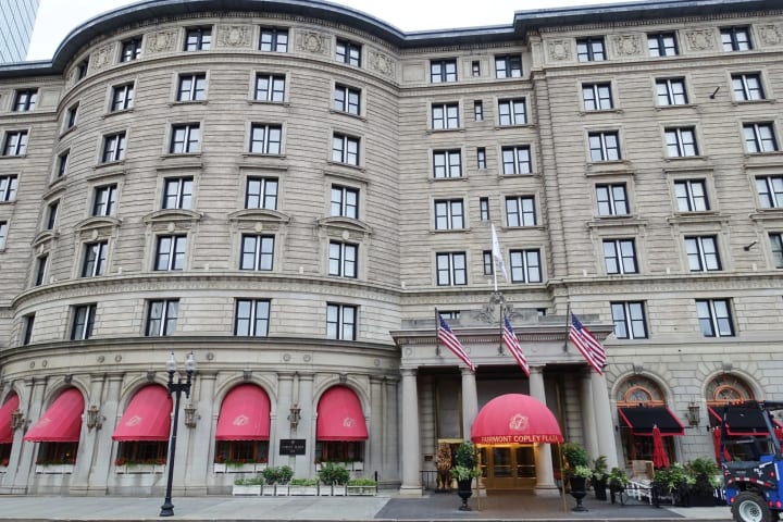 On the third side of the square is the Fairmont Copley Plaza. These are three buildings that are backed by the sheer glass wall of a skyscraper and together create an amazing cityscape. A block down is the finish line of the Boston Marathon.