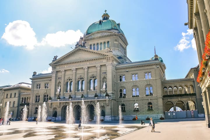 The construction of the House of Parliament began in 1852. The West wing was added in 1884 and in 1902 the building consisted of three parts. The decorations on the building are the artistic work of 38 artists from all over Switzerland. The Parliament Building is the seat of the Swiss government – Federal Council and the parliament – National Council and Council of States. Lots of what is symbolic of Swiss history can be seen in the central domed hall and both chambers. The building was inaugurated on July 31 and on August 1, 2004, which is Swiss National Day. The square is a place to gather for residents and hosts the traditional weekly market.