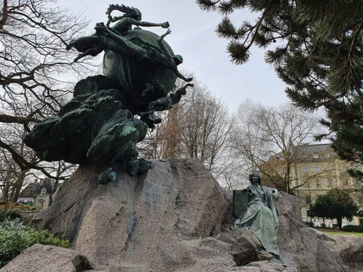Weltpostdenkmal Kleine Schanze In 1903/04 when international prizes were being awarded by the Universal Postal Union first prize was won by Rene de St. Marceaux (Paris). His design was cast in bronze in 1908 and set in Kleine Schanze Park on October 4, 1909.