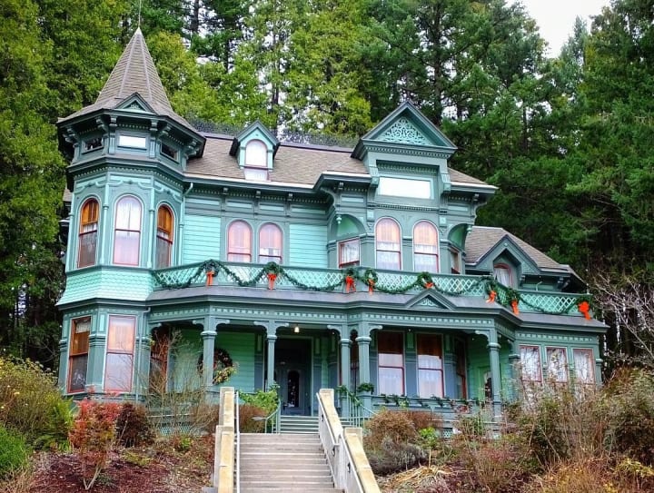 The Shelton-McMurphey-Johnson House was built in 1888. It has become a landmark in Eugene as it sits perched on the slopes of Skinner Butte. The interior has historical artifacts, clothing, and furniture. Public tours, afternoon tea, and other events are hosted at the house. It is listed on the National Register of Historic Places.
