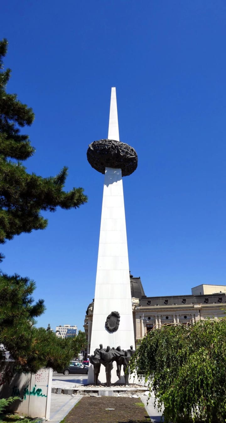 The square is known for the dramatic Monument of Rebirth erected in 2005. It includes the names of 1,058 victims of the bloody revolution and a bronze statue of Iuliu Maniu, the Romanian prime minister imprisoned by the communist party.