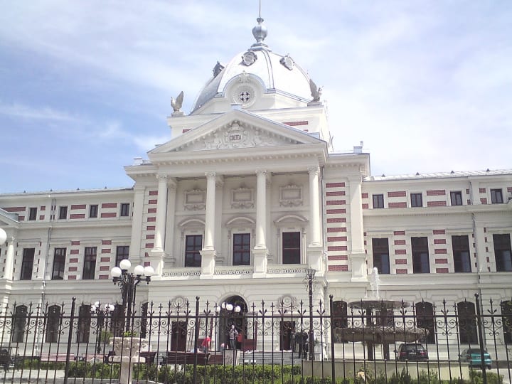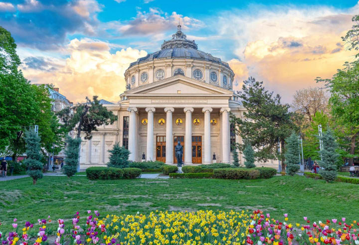 The Romanian Athenaeum, Bucharest’s most prestigious concert hall was designed by French architect Albert Galleron and was finished in 1888. This building reminds visitors of an ancient temple since it has a high dome and Doric columns. In the lobby is a lovely painted ceiling that has been decorated in gold leaf. From an impressive spiral staircase, curved balconies cascade in ringlets. Elaborate brass lanterns hang from flowing arches that link a ring of pink marble columns. Inside the concert hall, the ceiling and walls are covered by voluptuous frescoes. This is the home of the Romanian George Enescu Philharmonic Orchestra.