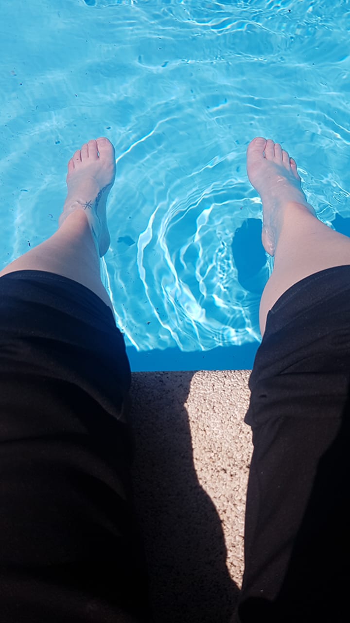 And pizza and pasta as well, and XXL icecreams and murder me, I know, we are in Spain, but oh god it was just delicious. The pool was ice cold though, there were some brave ass people who went in. I skipped the whole body dipping, but it felt sooo good to my broken feet. After that a little chill with others, drinks, sunbathing I got the Spanish vacation vibes a bit…