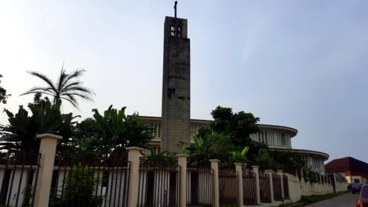 St. Michael’s Cathedral is one of the most prominent religious landmarks in Libreville. Its unique architecture, including wooden pillars carved by a famous Gabonese artist.The cathedral has carved pillars sculpted by renowned artist Zephirin Lendogno of Lambatene. There are murals and a big statue of St. George killing the dragon.