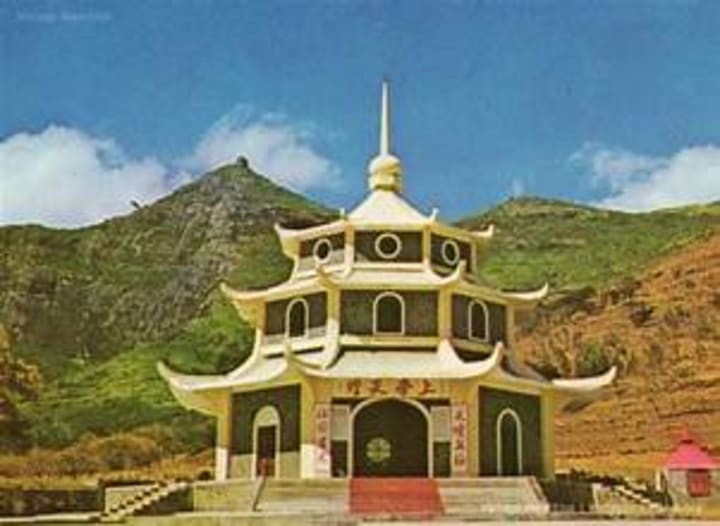 The Chinese Tien Tan Pagoda is located at the foot of the Signal Mountain.
