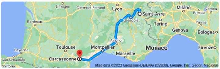 From Saint-Avre through Provence, we crossed plenty of hilly areas and arrived at around 6 p.m. in Carcassonne.